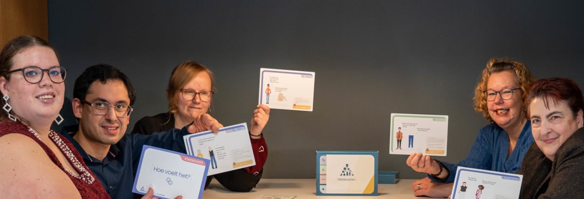 Bij de aanpak van De Kracht van kleding gaan cliënten, verwanten en begeleiders met elkaar in gesprek over wat kleding voor iemand betekent. Ook lastige onderwerpen kunnen besproken worden. ‘Als een cliënt zijn kleding niet graag wast, kun je door middel van verschillende werkvormen samen kijken wat wel werkt’, zegt Mayke.