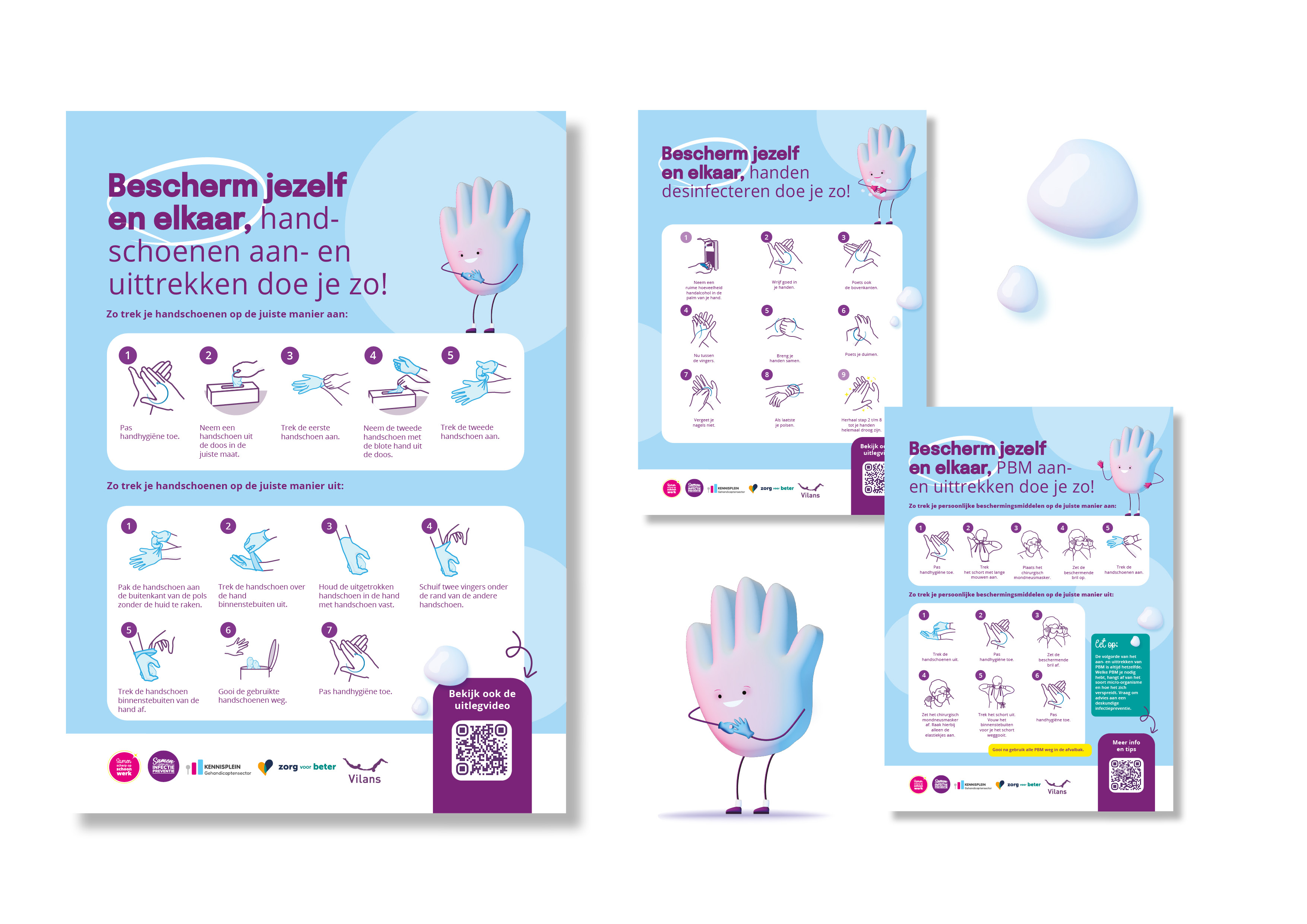 - poster ‘Bescherm jezelf en elkaar: handschoenen aan- en uittrekken doe je zo!’